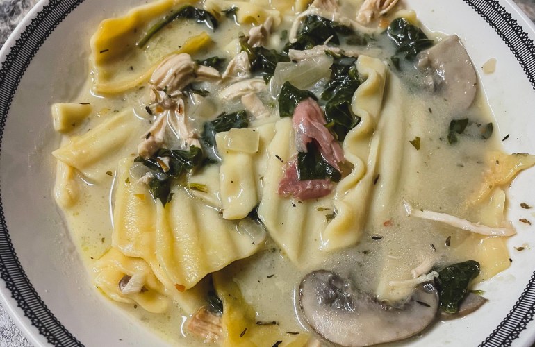 Isn’t this a fun and unexpected soup! Love the idea. This is a great use for those remnants of lasagna noodles in the boxes!