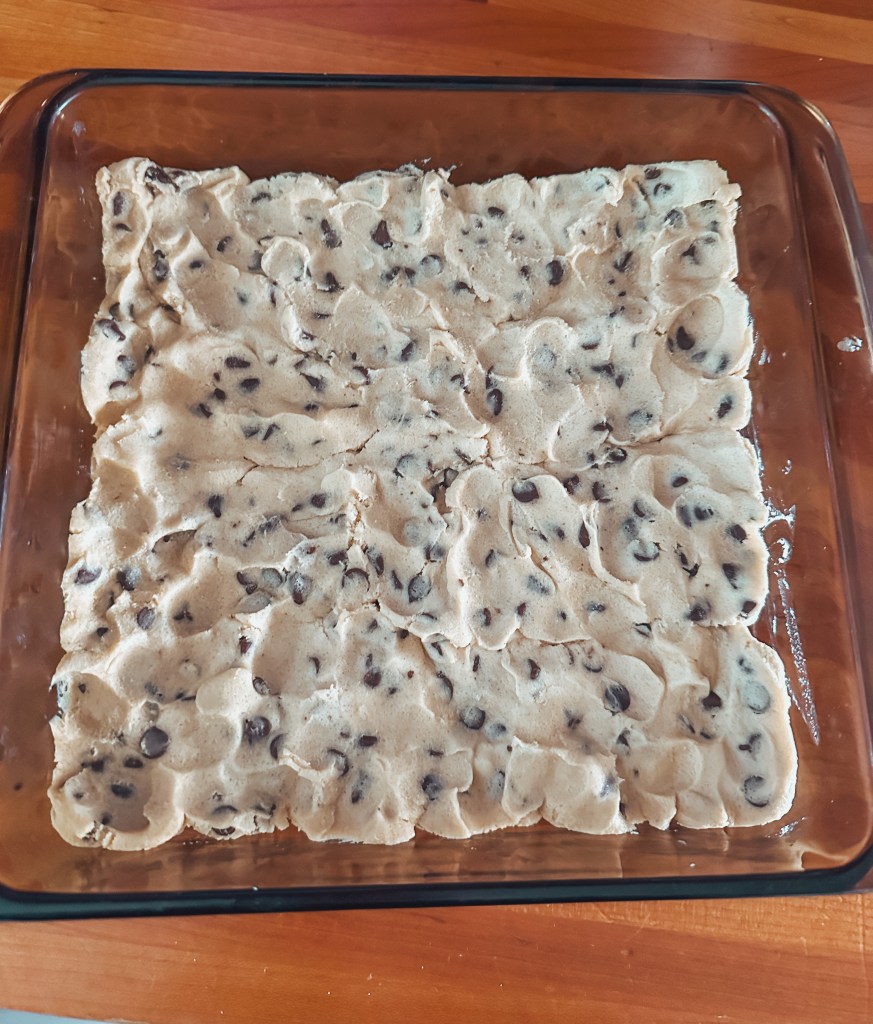 Top the apple fritter bread with the remaining apple chunks and bake for 50-55 minutes.
