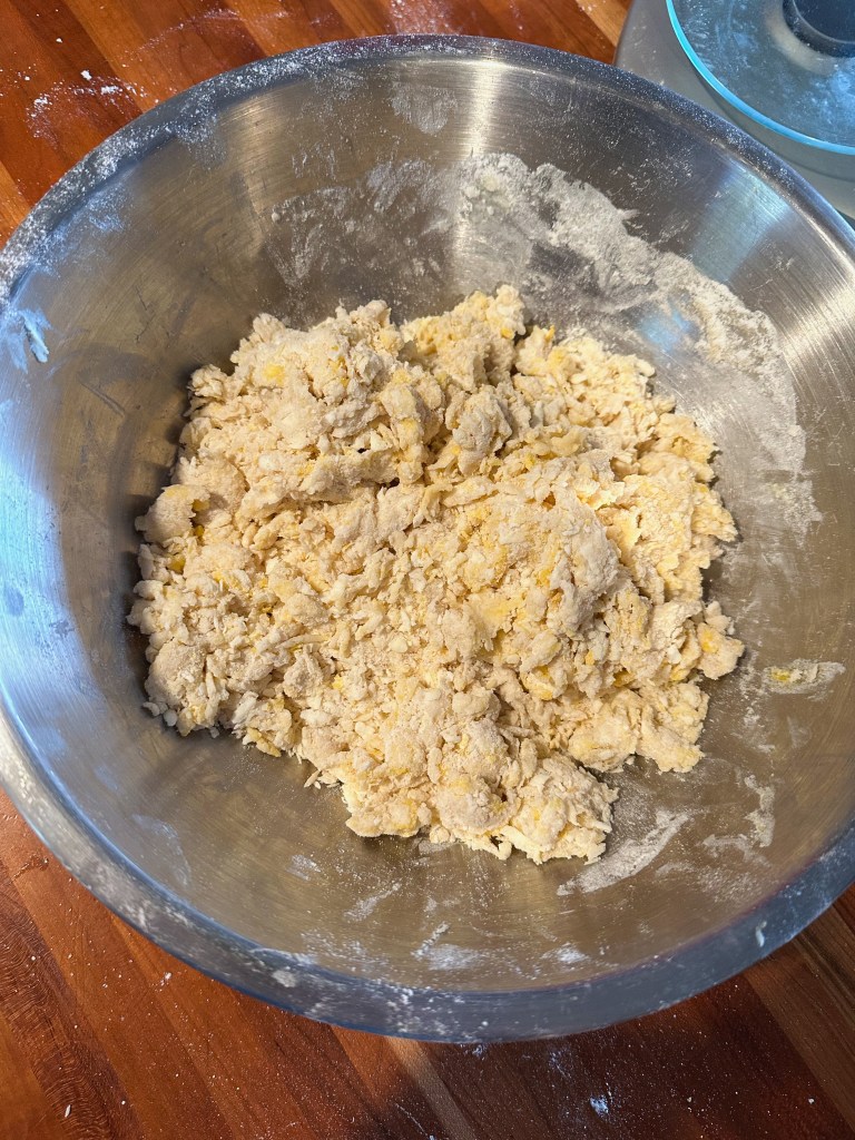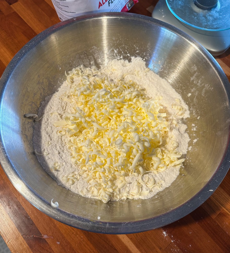 In a medium mixing bowl, mix the chopped apples + brown sugar+ cinnamon + ginger together and set aside.