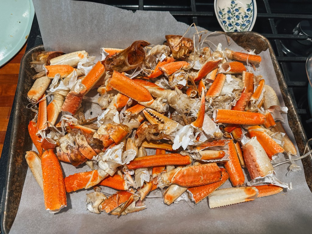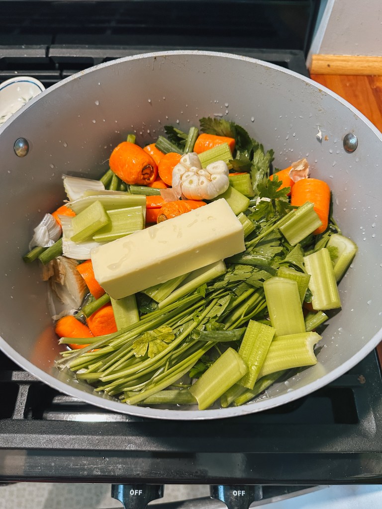 I live laugh love making stock! It makes me feel better about not having food waste and using these shells for another purpose & I get to make tons of yummy things with it. I made this stock using leftover crab leg shells and scampi shells that I had frozen. Feel free to use shrimp shells or lobster shells as well.