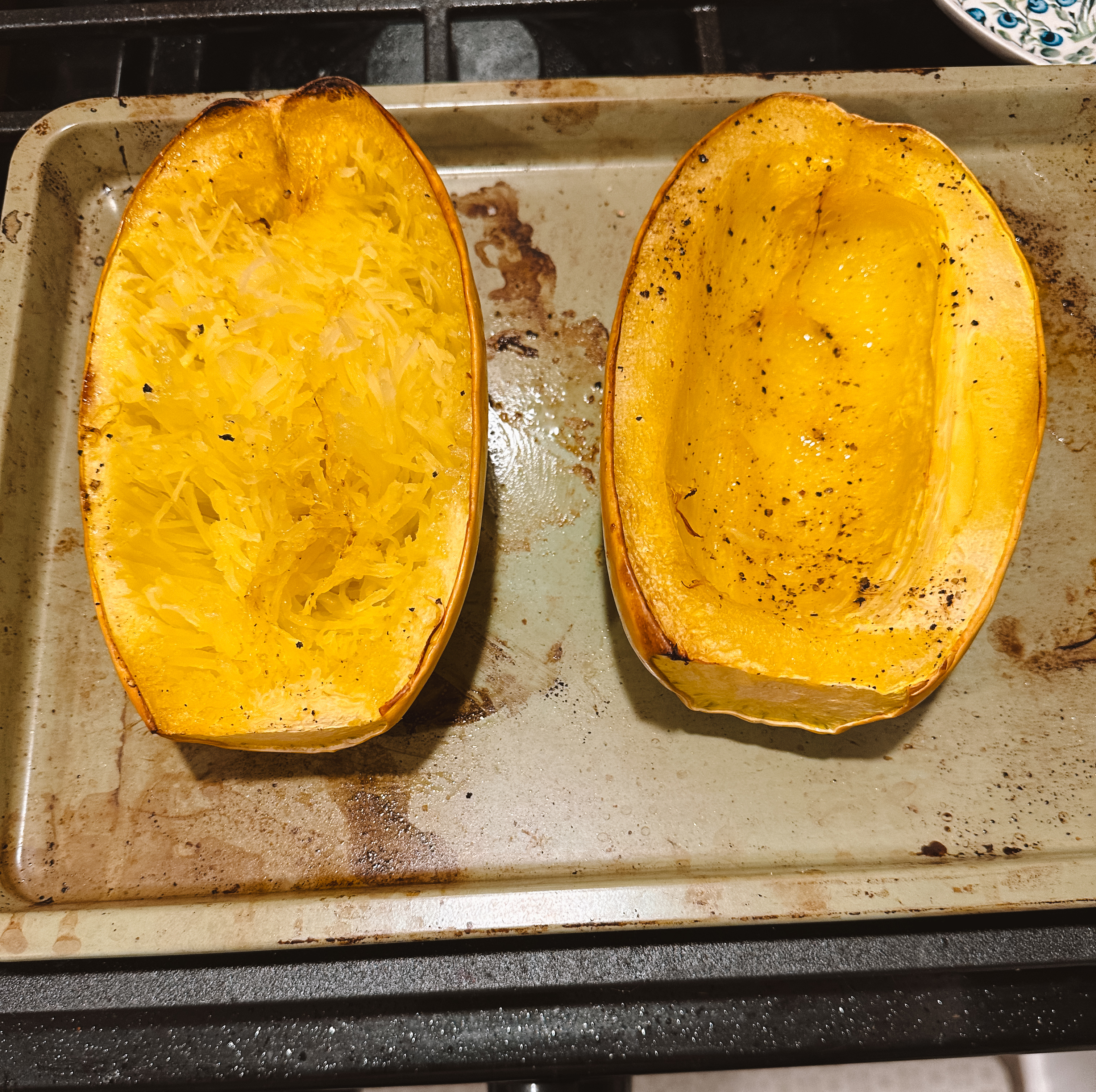 • 1 Spaghetti Squash, halved and seeds removed