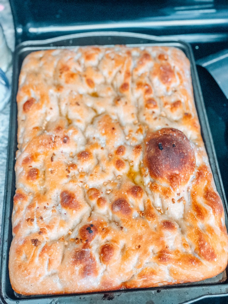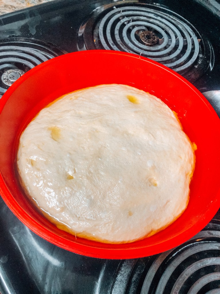 Preheat the oven to 500°F and put your Dutch oven in the oven while it preheats. Place your dough on a piece of parchment paper and score the bread to release the steam. Carefully remove your Dutch oven once the oven has preheated and place your dough inside. Cover with the lid and bake at 500F for 20 minutes. After the initial 20 minutes, reduce the heat to 475°F and bake for another 25 minutes.
