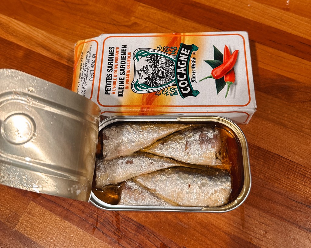 • 3 Sardines + a little oil from the tin