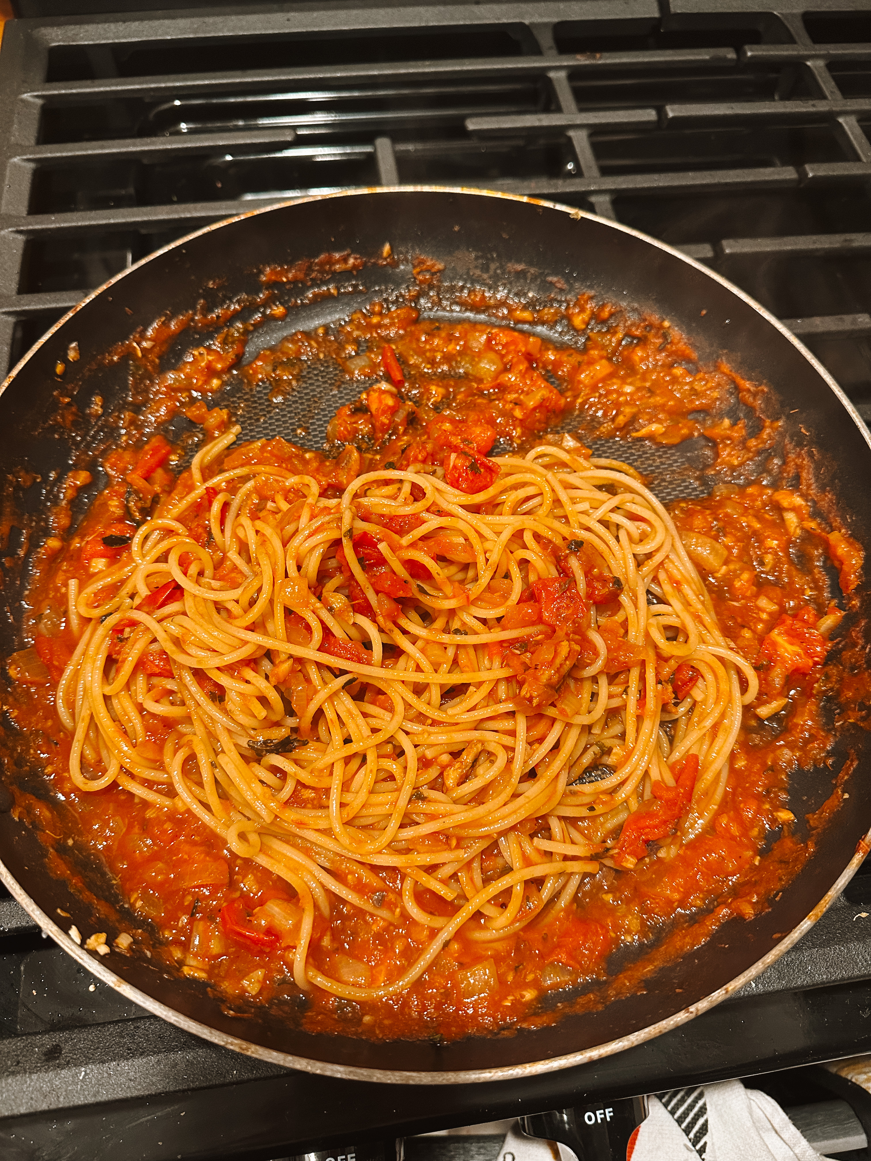 I am mad at myself for being so late on the tinned fish game. I had these spicy sardines from the Tinned Fish Market and pasta sounded like the perfect thing to add them to. This recipe comes from Crafty Cooking Mama and it turned out great! With it just being me the sauce made enough for left overs for the next night! Feel free to use whatever kind of sardines you like, I used spicy ones to add an extra kick.