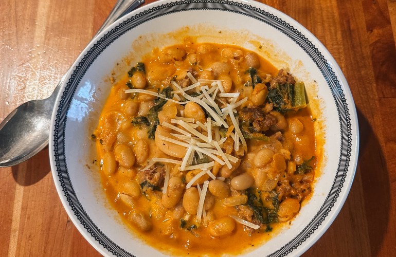 After repeatedly making the same soup, it’s exciting to switch things up. I had found this recipe for creamy bean soup, and I figured now was the ideal time to give it a try. My mom had an extra roll of sausage, I had some cans of beans, and I picked up some kale to add some veggies. This soup was so delicious, and I looked forward to eating it every day for lunch. The only thing it was missing was some crispy bread to dip it in. This will be a repeat recipe for me for sure.