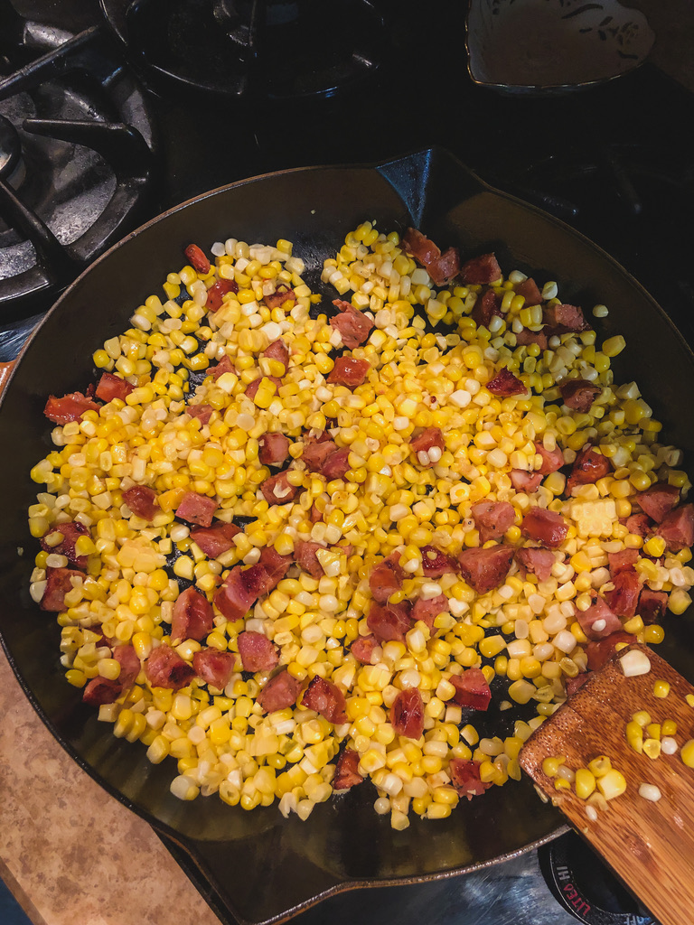 Heat the EVOO and butter in a large pot over med-high heat until the butter is melted. Add in onions + garlic + ginger and cook, stirring until the onions have softened. Add in the remaining spices, coriander + cumin + turmeric + cayenne + 1 TSP Salt.