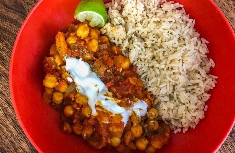 Serve the masala ASAP with some jasmine or basmati rice. Top with, if you’d like, some red onion and cilantro on top with lime wedges and a scoop of yogurt!